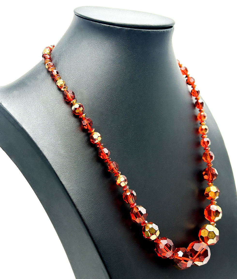 Bead detail: Graduated round beads with natural wood grain patterning
